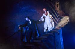 Nearly every theater lover knows the story: deformed since infancy, a bitter and intimidating man known as “the Phantom” (Derrick Davis) dwells in the Paris Opera House sewers. A gifted but frustrated inventor, composer and musician, the Phantom befriends a languishing chorus girl named Christine Daae (Katie Travis). The ethereal Svengali falls in love with Christine while training her to be an opera diva. He then sets about terrorizing the rest of the cast, demanding lead roles for his beloved protégé.