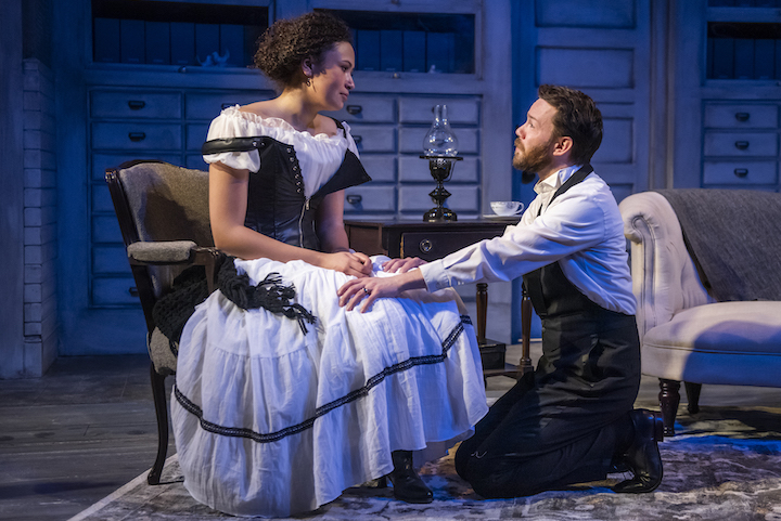 But thanks to Danan’s commanding performance, we sense that Nora never fully trusted her husband’s placement of her on that pedestal. It’s evident that she sees herself as window dressing, albeit fluent in niceties. Danan infuses Nora’s Act I trifling dialogue with a sort of omniscient dread that makes a familiar journey feel novel. This character sees it all coming – even if she doesn’t know it until the moment she picks up her small bag and walks out the front door.”